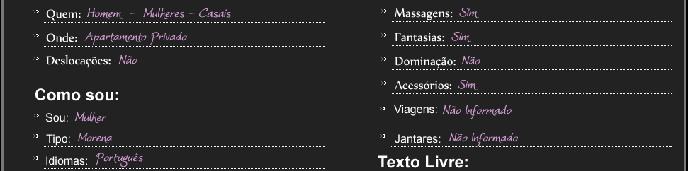 Por questões de segurança e sigilo, não será apresentada a morada exacta da Acompanhante, a mesma será fornecida através de contacto telefônico. |