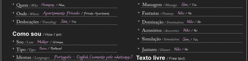 Por questões de segurança e sigilo, não será apresentada a morada exacta da Acompanhante, a mesma será fornecida através de contacto telefônico. |