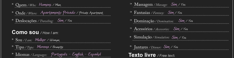 Por questões de segurança e sigilo, não será apresentada a morada exacta da Acompanhante, a mesma será fornecida através de contacto telefônico. |